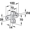 Vægholder til montage af søjle med huller i 2 rækker. Dette beslag anvendes til at montere søjlen til væggen.
