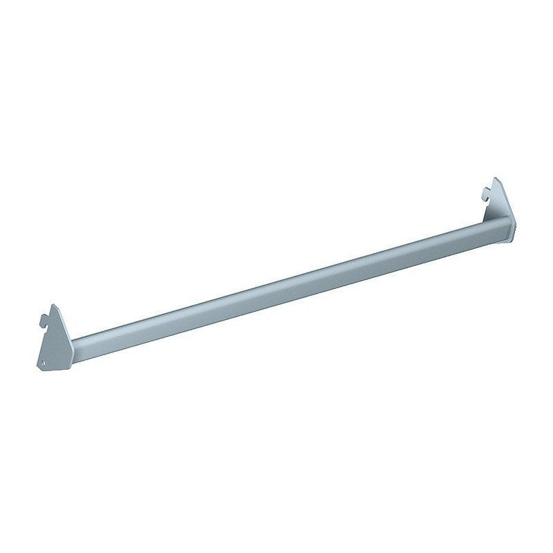 Bøjlestang til vores smarte byg-selv-reolsystem. Denne model kommer med 1 ophængskrog i hver side og kan hægtes direkte fast mellem 2 skinner eller søjler.
