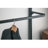 Firkantet bøjlestang til vores smarte byg-selv-reolsystem. Denne model kommer med 1 ophængskrog i hver side, og kan hægtes direkte fast mellem 2 skinner eller søjler.