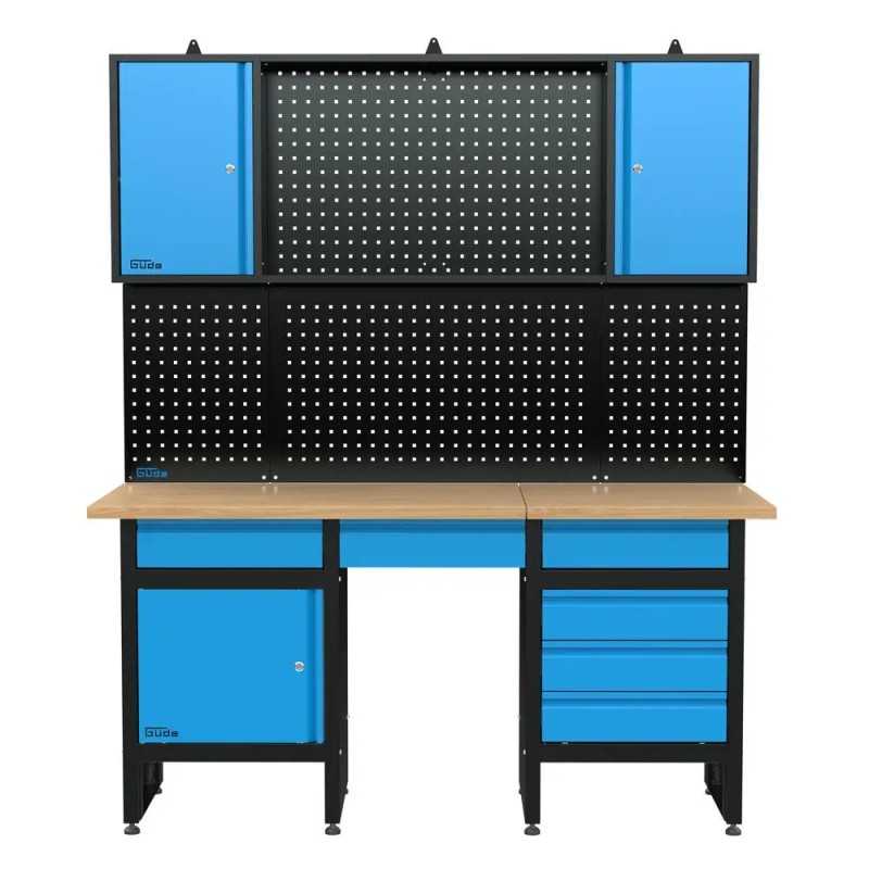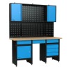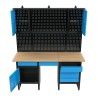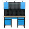 Stor arbejdsbænk på 1709 mm med lige så lang hultavle og skab. Der er i alt 6 skuffer og 3 kabinetter med lås i systemet. Derudover går hultavlen hele ved op igennem det øverste kabinet (se billedet).