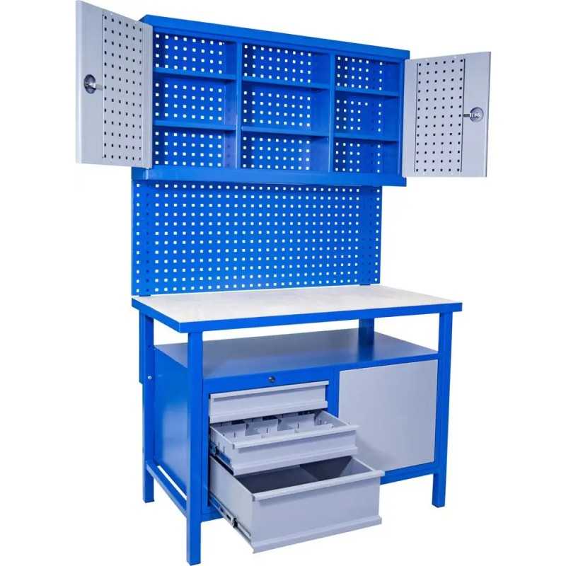 Sæt med 3 praktiske dele fra Güde Pro line serien. Sættet består af en arbejdsbænk med rummelige skuffer og låsbart kabinet, hultavle og kabinet med indbygget hultavle som bagplade. Sættet har altså masser af opbevaringsplads sikret bag cylinderlåse og svejset stål.