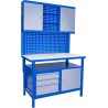 Arbejdsbænken har 3 skuffer, hvoraf de to små har justerbare skuffeinddelere, samt et kabinet med flytbare hylder.