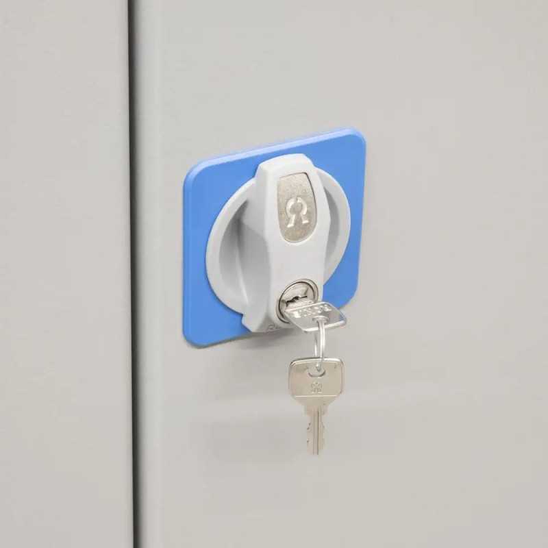 - Skab og hultavle: Pulverlakeret blå (RAL 5015)