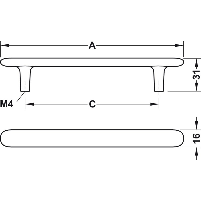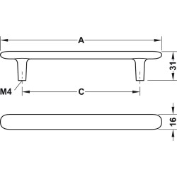 Häfele Design Model H2135. Moderne og enkelt greb med bløde hjørner. Grebet har et enkelt design og er det perfekte greb til dig som leder efter et moderne og tidløst greb.