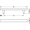 Længde, mål A mm Højde, mål B mm Hulafstand, mål C mm